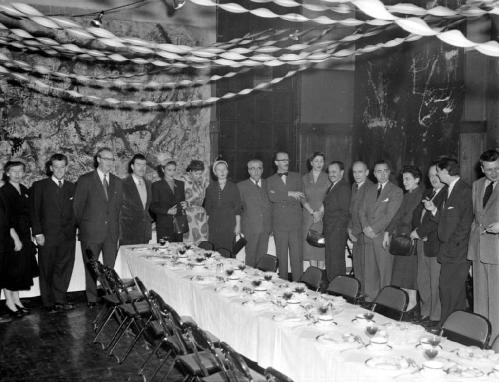 H. Plante. École des Beaux-Arts. Banquet des élèves de l'École des Beaux-Arts de Québec à l'École des Beaux-Arts de Montréal, 1954, Archives nationales à Montréal, Fonds Ministère de la Culture et des Communications, (06M,E6,S7,SS1,D203949-203949), Photographe non identifié.