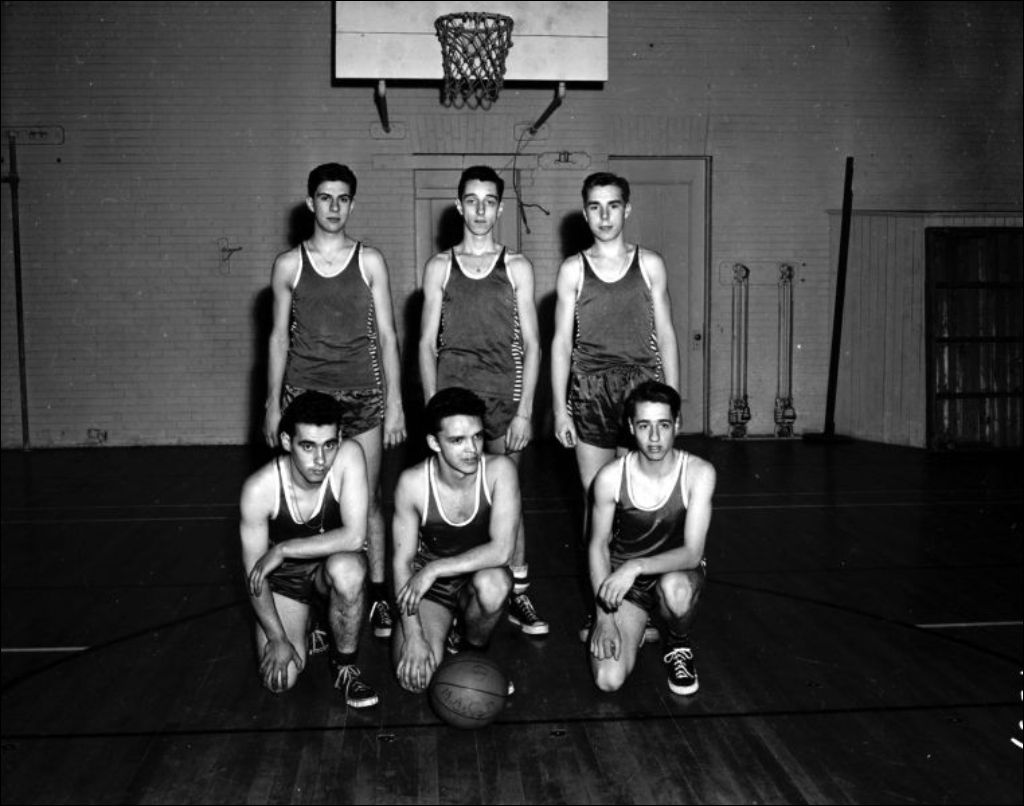 - Équipes de ballon-panier à La Palestre Nationale située sur la rue Cherrier à Montréal. Nous apercevons les joueurs réunis (E6,S7,SS1,P204559 et E6,S7,SS1,P204560) dont ceux de la section Nord de l'École des arts et métiers de Montréal (E6,S7,SS1,P204561)