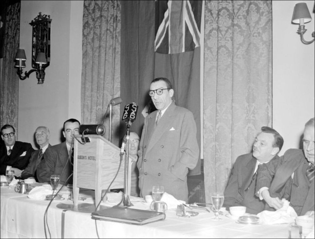 - Conférence sur le tourisme qui s'est déroulée à l'Hôtel Queen's situé sur la rue Windsor (devenue la rue Peel) à Montréal. Nous apercevons les invités d'honneur réunis (E6,S7,SS1,P204690) qui prononcent des discours (E6,S7,SS1,P204689, E6,S7,SS1,P204692 à E6,S7,SS1,P204694)