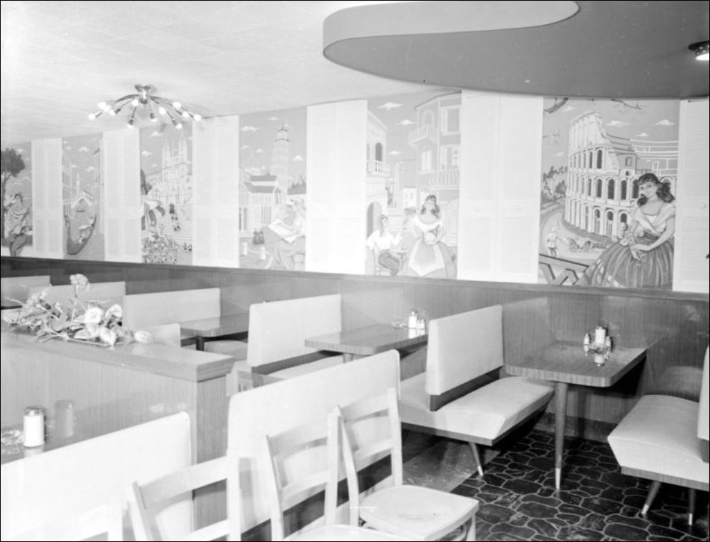 - Restaurant situé à Lachine. Nous apercevons les cuisiniers au travail (E6,S7,SS1,P206789). Nous remarquons les clients qui sont attablés (E6,S7,SS1,P206786 et E6,S7,SS1,P206790) et les serveuses qui attendent (E6,S7,SS1,P206788). Dossier créé pour Eddy Provost