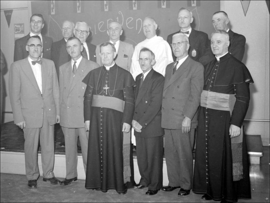 - Il s'agit du 25e anniversaire de la fondation de la Société coopérative agricole de tabac du district de Joliette. Les convives sont réunis (E6,S7,SS1,P207118). Nous remarquons les invités d'honneur réunis (E6,S7,SS1,P207117 et E6,S7,SS1,P207119) dont Joseph-Arthur Papineau, évêque de Joliette. À cette occasion, nous apercevons le public présent à la cathédrale de Joliette (E6,S7,SS1,P207121). Dossier commandé pour G. E. Turcotte, ministère de l'Agriculture
