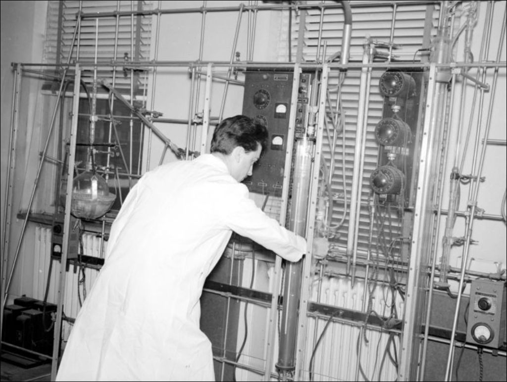 - Il s'agit de chimistes et de bactériologistes au travail dans des laboratoires. Nous apercevons également des secrétaires (E6,S7,SS1,P208509) et probablement des directeurs à leur bureau (E6,S7,SS1,P208505 et E6,S7,SS1,P208507). Reportage commandé par le Dr Archambault