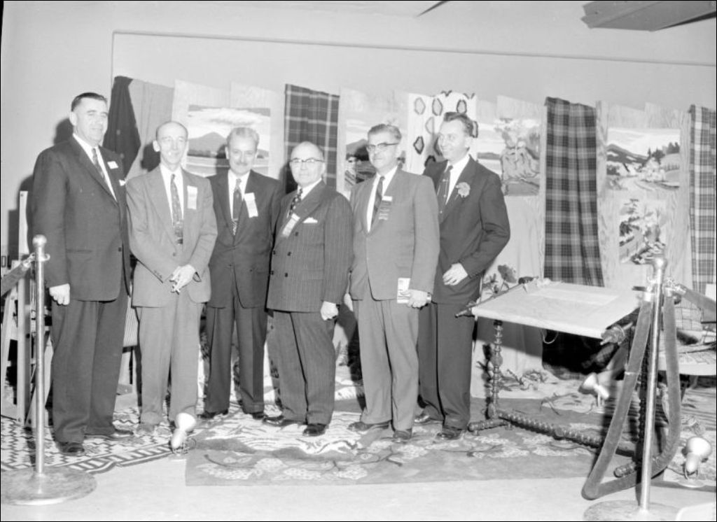 M. Gabriel Renaud. Visite cardinal Léger. Dan. Johnson. MPP. Palais du Commerce, 1956, Archives nationales à Montréal, Fonds Ministère de la Culture et des Communications, (06M,E6,S7,SS1,D208986-208989), Photographe non identifié.