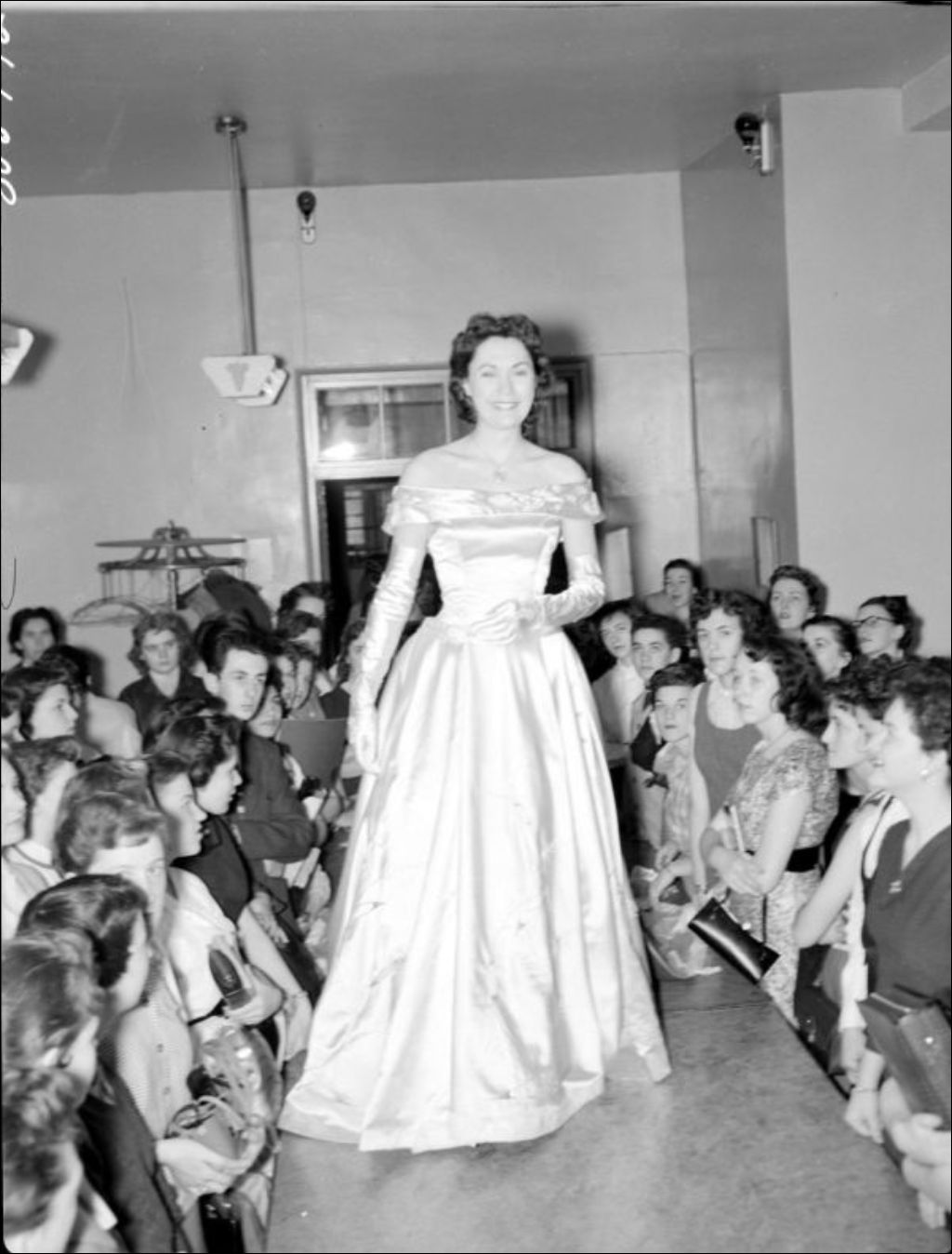 - Cliché de Thérèse Cadorette élue Miss Radio 1956. Comme le veut la tradition, Thérèse Cadorette porte une création d'un étudiant de l'École centrale d'arts et métiers. Dossier créé pour P.E. Lévesque