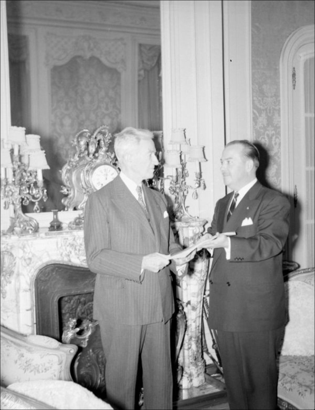 M. H.P. Garceau, ministère du Commerce et de l'Industrie. Sénateur Raymond, 1956, Archives nationales à Montréal, Fonds Ministère de la Culture et des Communications, (06M,E6,S7,SS1,D209251-209251), Photographe non identifié.