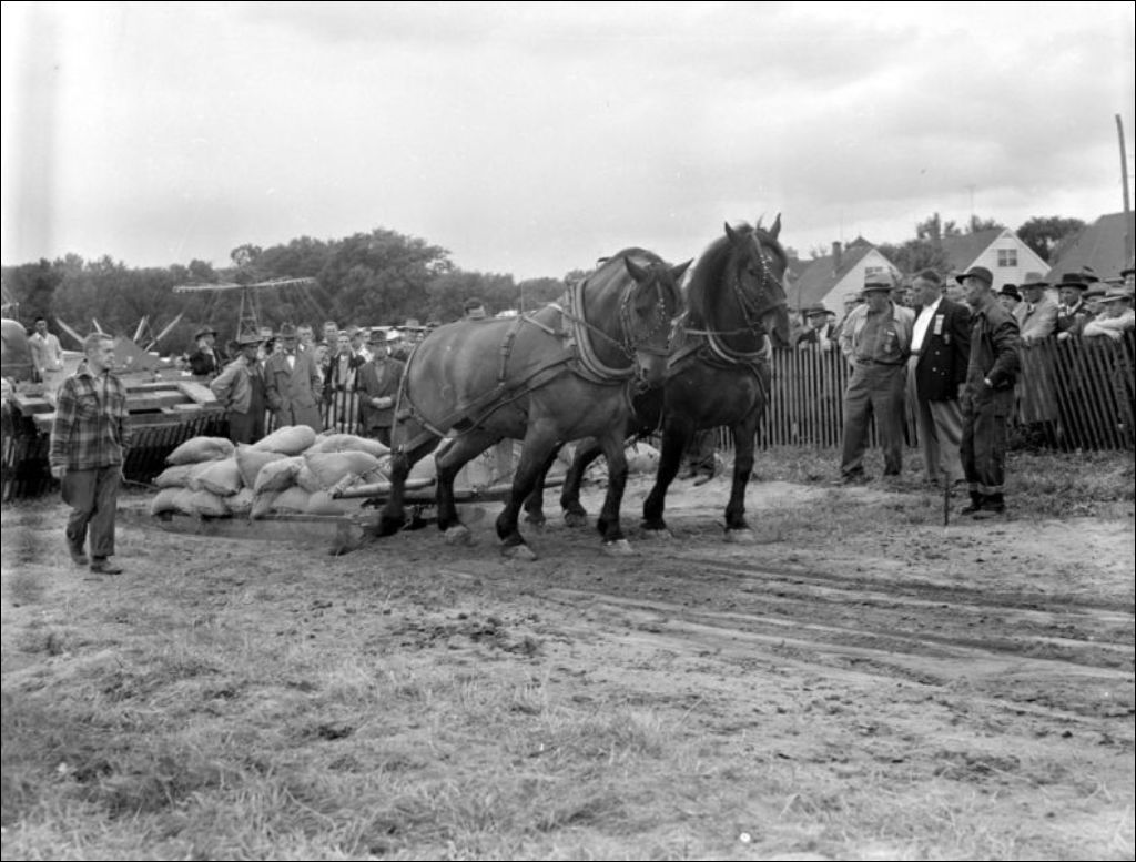 - Des bovins, des poules et des lapins participent à la foire agricole. Des chevaux prennent également part à des concours d'habiletés. Par ailleurs, des kiosques de vêtements, de tissus, de fruits, de légumes, de fleurs et d'artisanat local complètent l'exposition. Dossier réalisé pour monsieur J. W. Delaney, agronome