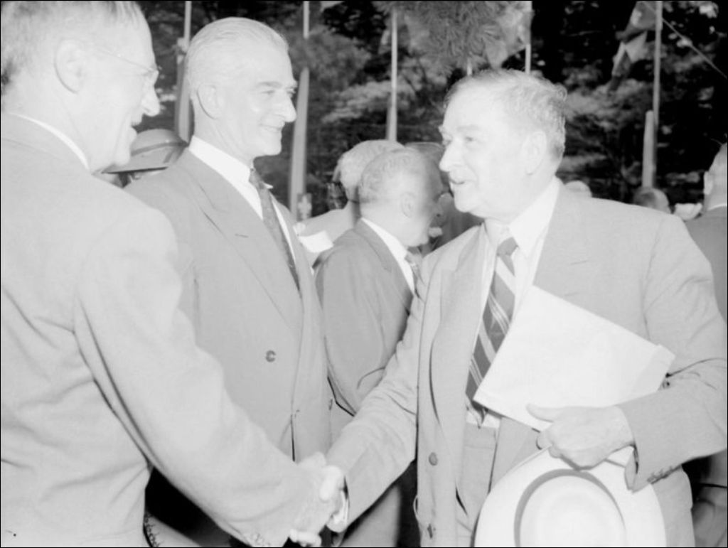 Cérémonie en l'honneur du 25e anniversaire de vie politique de Joseph-Mignault-Paul Sauvé, ministre du Bien-être social et de la Jeunesse, à la pinède d'Oka, 1955, Archives nationales à Montréal, Fonds Ministère de la Culture et des Communications, (06M,E6,S7,SS1,D211069-211096), Joseph Guibord.