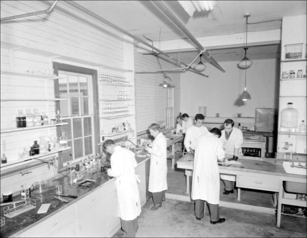 - Représentation de laboratoires (211192 et 211194) où des étudiants effectuent des analyses (211191) et une opération sur un animal (211199). On remarque également une bibliothèque (211193). À ces images s'ajoutent des photos de groupe d'étudiants (211197 et 211198). Enfin, des clichés des membres de l'administration (211195 et 211196) complètent le dossier. Photographies exécutées pour Dr. Labelle, M. V