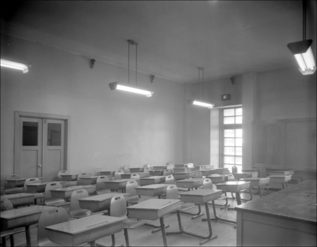 - Représentation des salles de classe où l'éclairage a été modifié. Dossier commandé par monsieur P. E. Lévesque