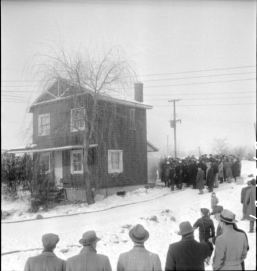 Incendie à Laval-des-Rapides, Laval, [195-?], Archives nationales à Montréal, Fonds Ministère de la Culture et des Communications, (06M,E6,S7,SS1,D213067-213067), Photographe non identifié.