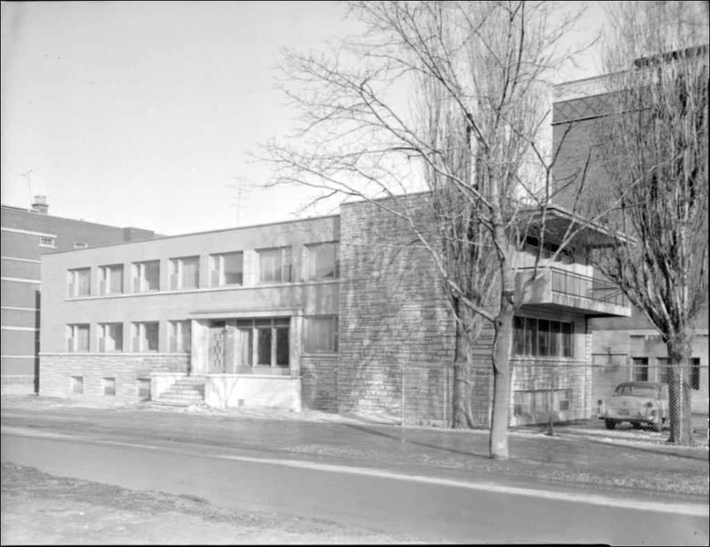 Extérieur d'une école publique, 1957, Archives nationales à Montréal, Fonds Ministère de la Culture et des Communications, (06M,E6,S7,SS1,D213128-213128), Photographe non identifié.