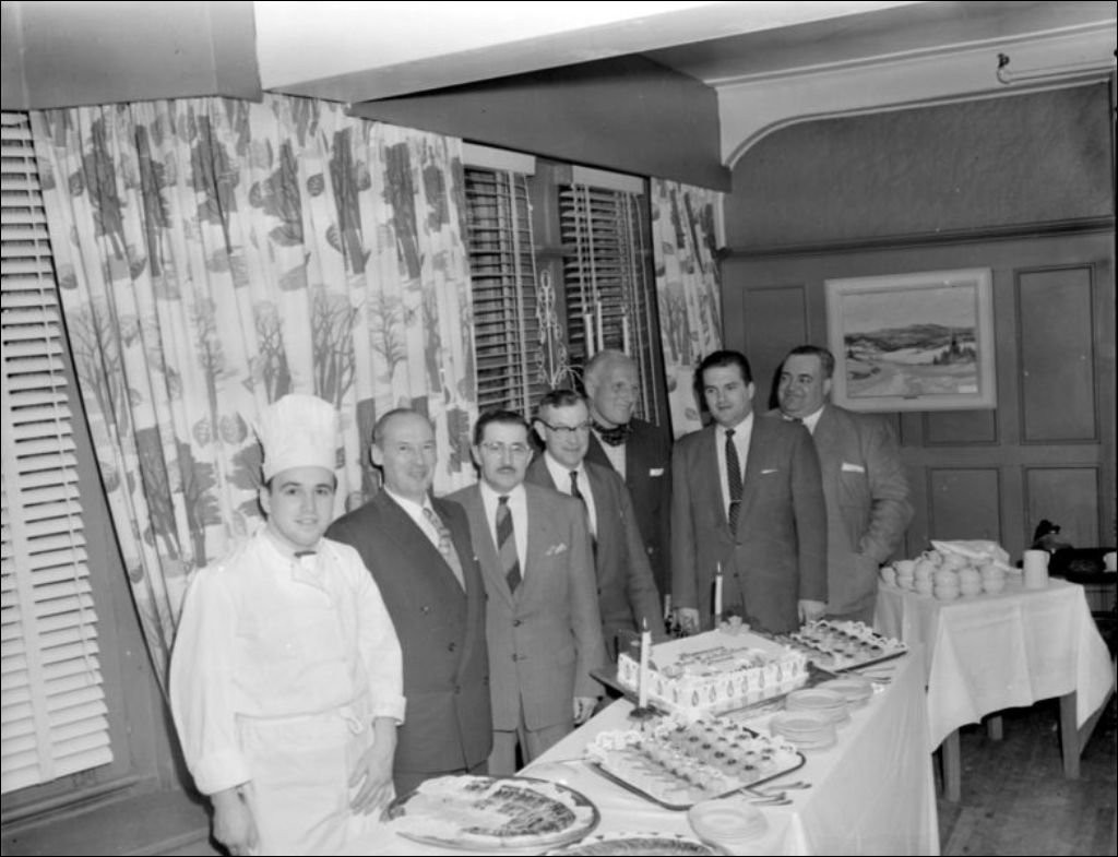Remise de trophées et de diplômes aux participants des Salons culinaires à l'hôtel Laurentide Inn, à Sainte-Agathe-des-Monts dans les Laurentides, [195-?], Archives nationales à Montréal, Fonds Ministère de la Culture et des Communications, (06M,E6,S7,SS1,D213169-213169), Photographe non identifié.