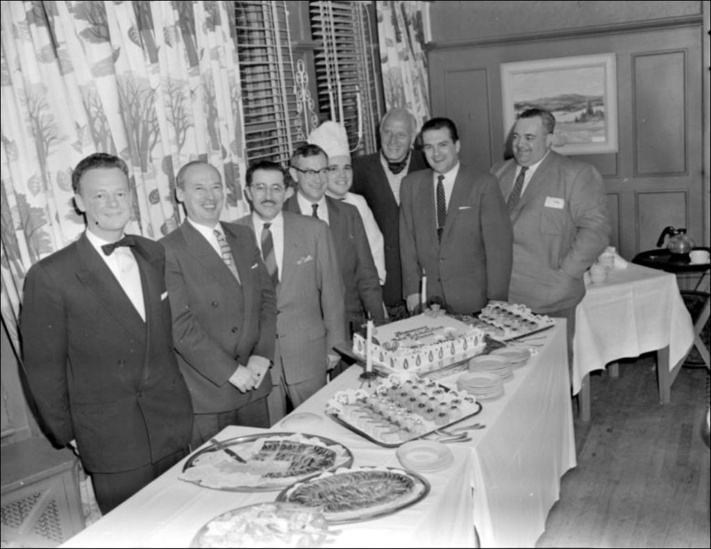 Remise de trophées et de diplômes aux participants des Salons culinaires à l'hôtel Laurentide Inn, à Sainte-Agathe-des-Monts dans les Laurentides, [195-?], Archives nationales à Montréal, Fonds Ministère de la Culture et des Communications, (06M,E6,S7,SS1,D213170-213170), Photographe non identifié.
