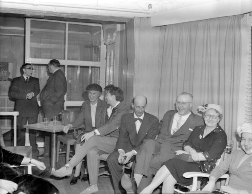 Remise de trophées et de diplômes aux participants des Salons culinaires à l'hôtel Laurentide Inn, à Sainte-Agathe-des-Monts dans les Laurentides, [195-?], Archives nationales à Montréal, Fonds Ministère de la Culture et des Communications, (06M,E6,S7,SS1,D213175-213175), Photographe non identifié.