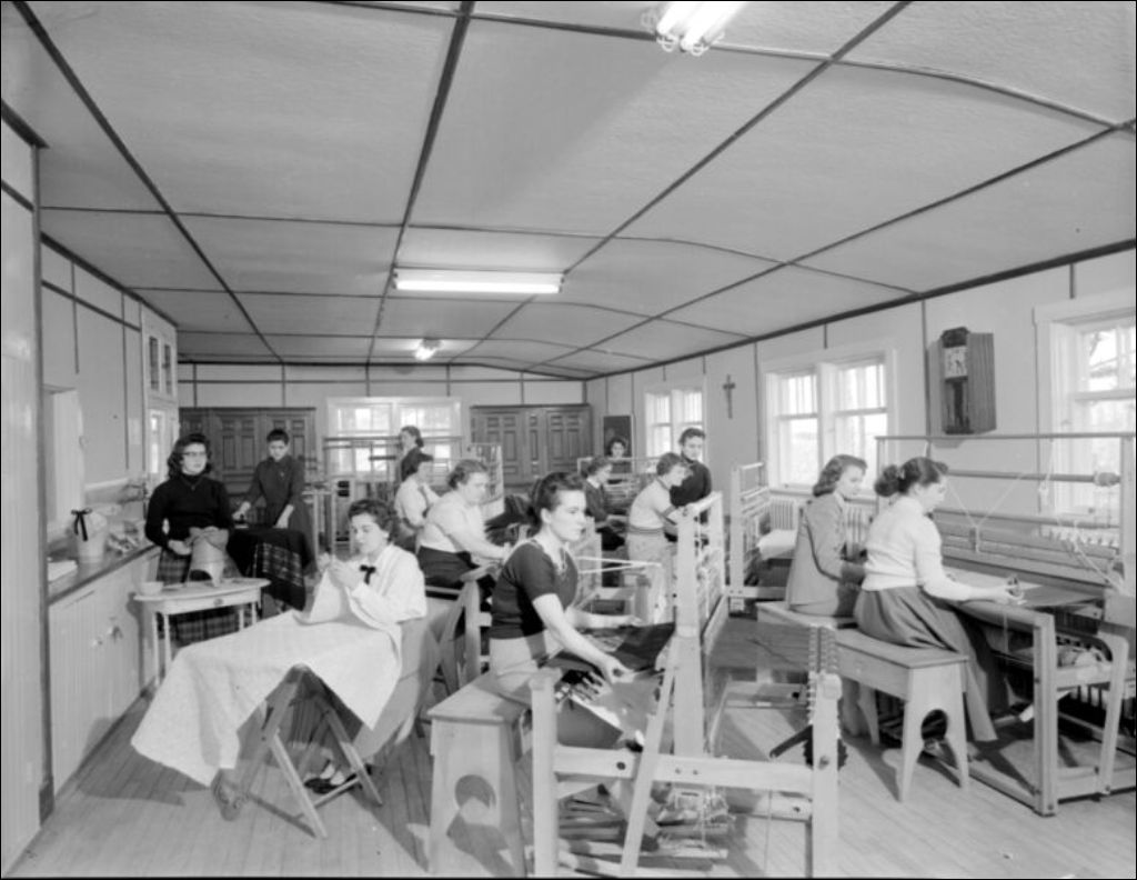 Activités de l'École ménagère à Upton, en Montérégie, [195-?], Archives nationales à Montréal, Fonds Ministère de la Culture et des Communications, (06M,E6,S7,SS1,D213183-213183), Photographe non identifié.