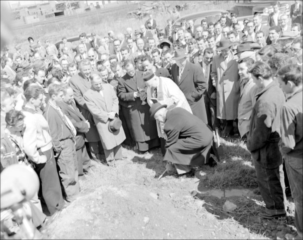 Construction d'une nouvelle aile au Centre d'apprentissage des métiers de la construction, [195-?], Archives nationales à Montréal, Fonds Ministère de la Culture et des Communications, (06M,E6,S7,SS1,D213519-213519), Photographe non identifié.