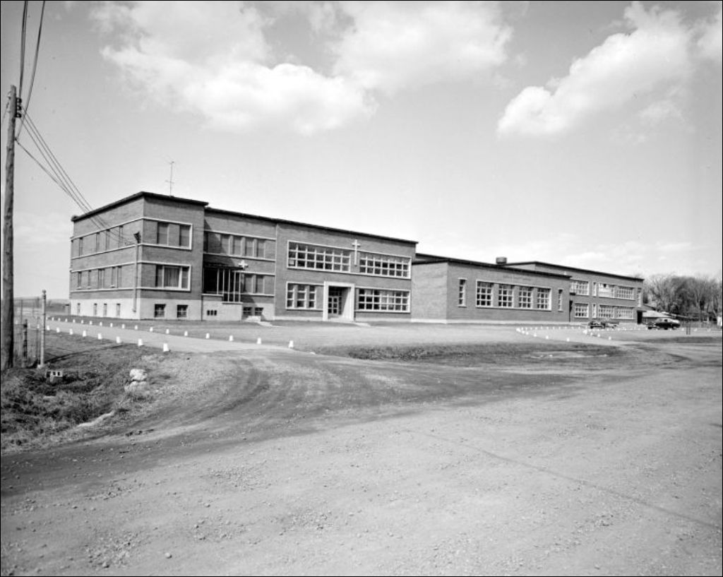 Programme d'embellissement de l'école Saint-Michel à Vaudreuil-Dorion, en Montérégie, [195-?], Archives nationales à Montréal, Fonds Ministère de la Culture et des Communications, (06M,E6,S7,SS1,D213541-213541), Photographe non identifié.