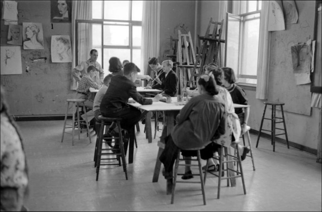 - Des enfants et de jeunes adultes participent aux ateliers de dessin, de peinture et de bricolage. Des clichés de sculptures représentant des visages masculins complètent le dossier. Photographies réalisées pour madame A. Nolin