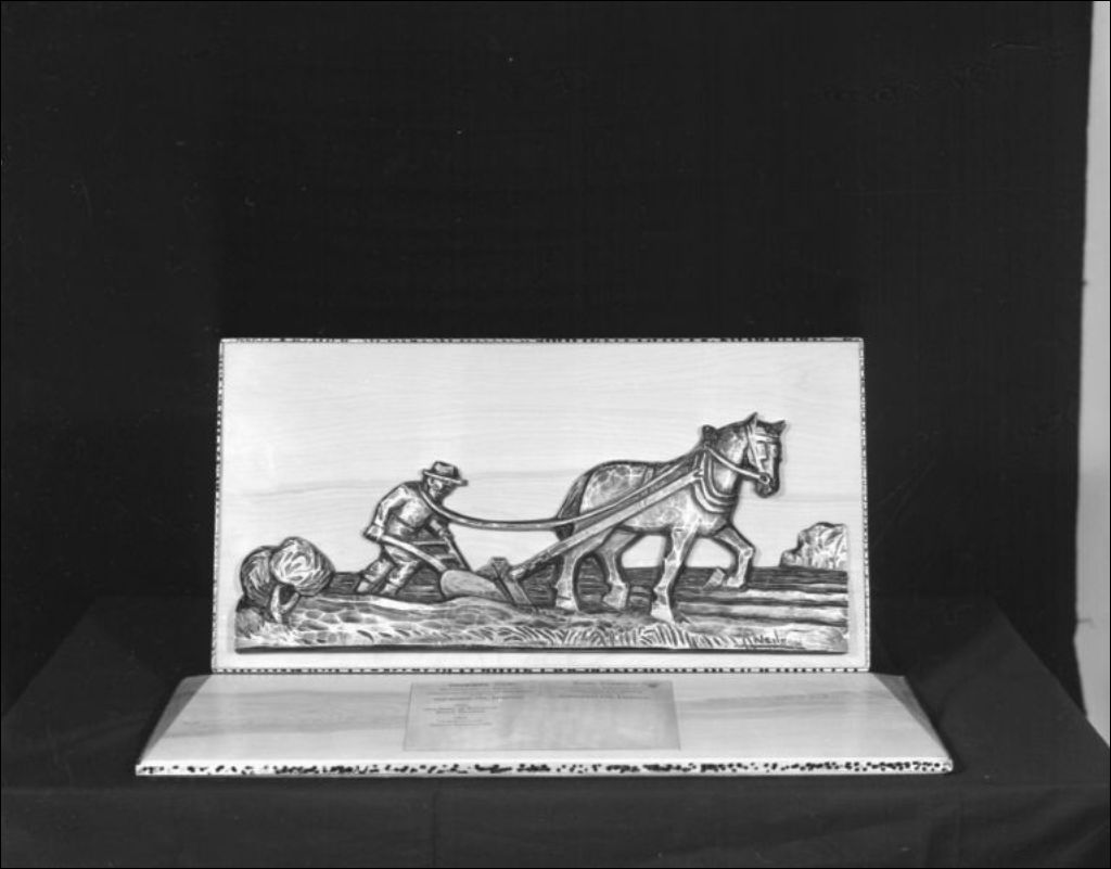 Trophée Esso offert au champion québécois du concours de tracteur, [1957?], Archives nationales à Montréal, Fonds Ministère de la Culture et des Communications, (06M,E6,S7,SS1,D214862-214862), Paul Girard.