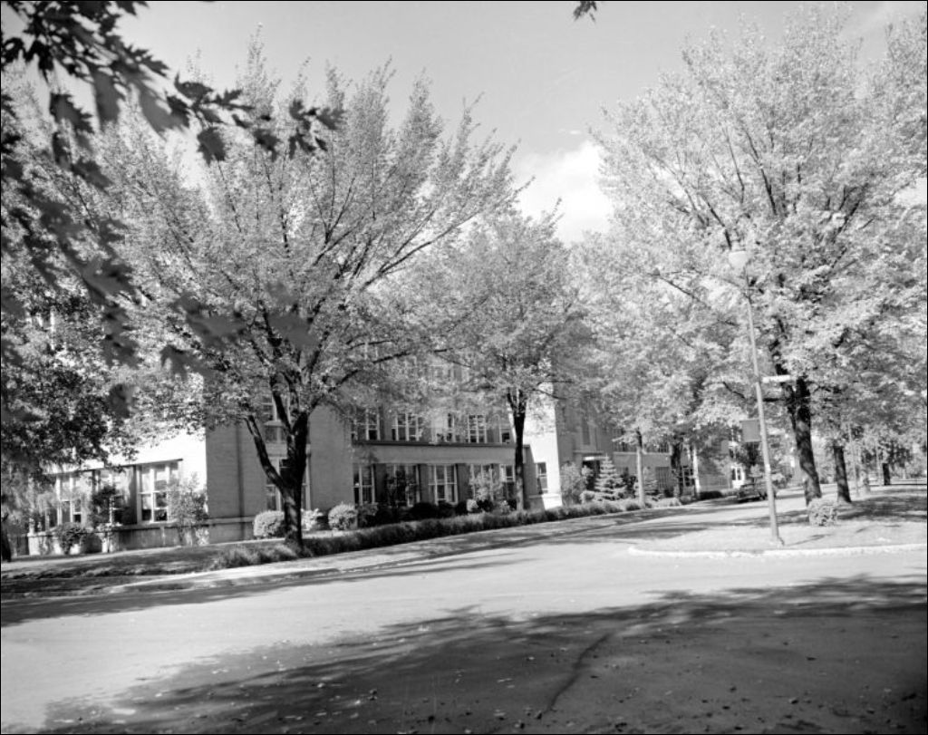 École de textile de Saint-Hyacinthe, en Montérégie, [195-?], Archives nationales à Montréal, Fonds Ministère de la Culture et des Communications, (06M,E6,S7,SS1,D215364-215364), Claude Décarie.