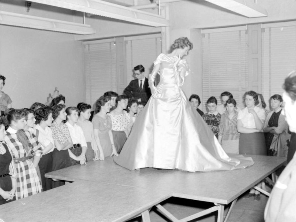 Ministère du Bien-être social et de la Jeunesse. Préparation du défilé de mode auquel participe la Reine de la radio, la comédienne Béatrice Picard, 1958, Archives nationales à Montréal, Fonds Ministère de la Culture et des Communications, (06M,E6,S7,SS1,D217393-217400), Jean Pratte.