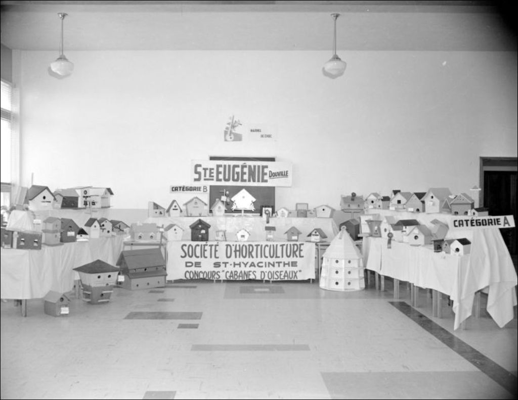 Concours de cabanes d'oiseaux organisé par la Société d'horticulture de Saint-Hyacinthe, avril 1958, Archives nationales à Montréal, Fonds Ministère de la Culture et des Communications, (06M,E6,S7,SS1,D217426-217439), Joseph Guibord.