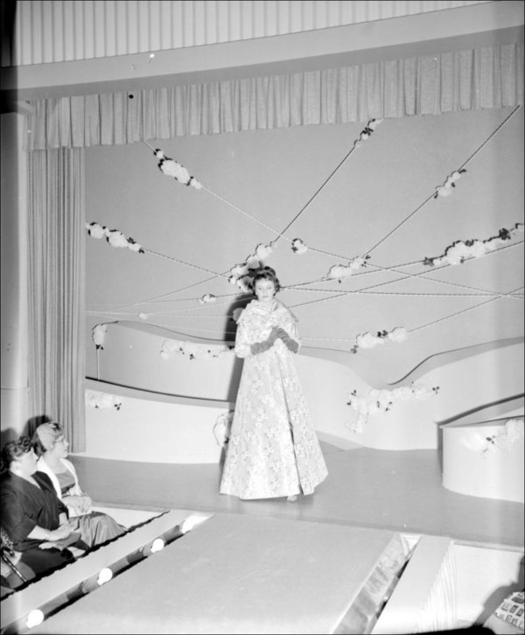 - Ministère du Bien-être social et de la Jeunesse. Défilé de mode où les mannequins portent des vêtements créés par les étudiantes de l'École des métiers féminins