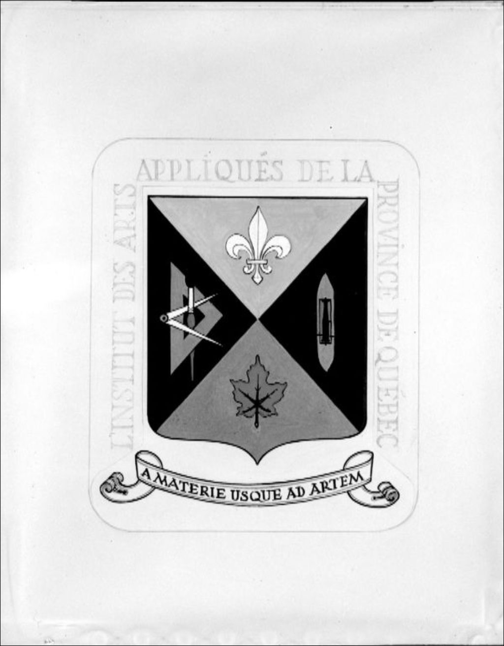Emblème de l'Institut des arts appliqués de la province de Québec, [195-?], Archives nationales à Montréal, Fonds Ministère de la Culture et des Communications, (06M,E6,S7,SS1,D218994B-218994B), Photographe non identifié.