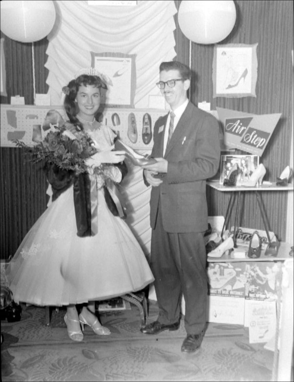 - Couronnement de la Reine de l'Ouest du Québec, Lise Baril de La Sarre (P218995 et P219007). La Reine est accompagnée de Monique Décarie, Reine de 1957 (P219002 et P219005), de ses princesses (P219003), de M. et Mme De Blois, Me Normand Grimard, R. Buisson, Pierre Jerome et Miss Val d'Or, Renée Houde (P219004). Davidson Dunton (P218996, P219000) et Me Grimard (P218997) animent la cérémonie de la coupe du ruban. Des clichés de J. R. Desfossés et Mme Guillemette (P219008), ainsi que du kiosque du ministère de l'Agriculture (P219016) complètent le dossier. Reportage réalisé pour M. De Blois