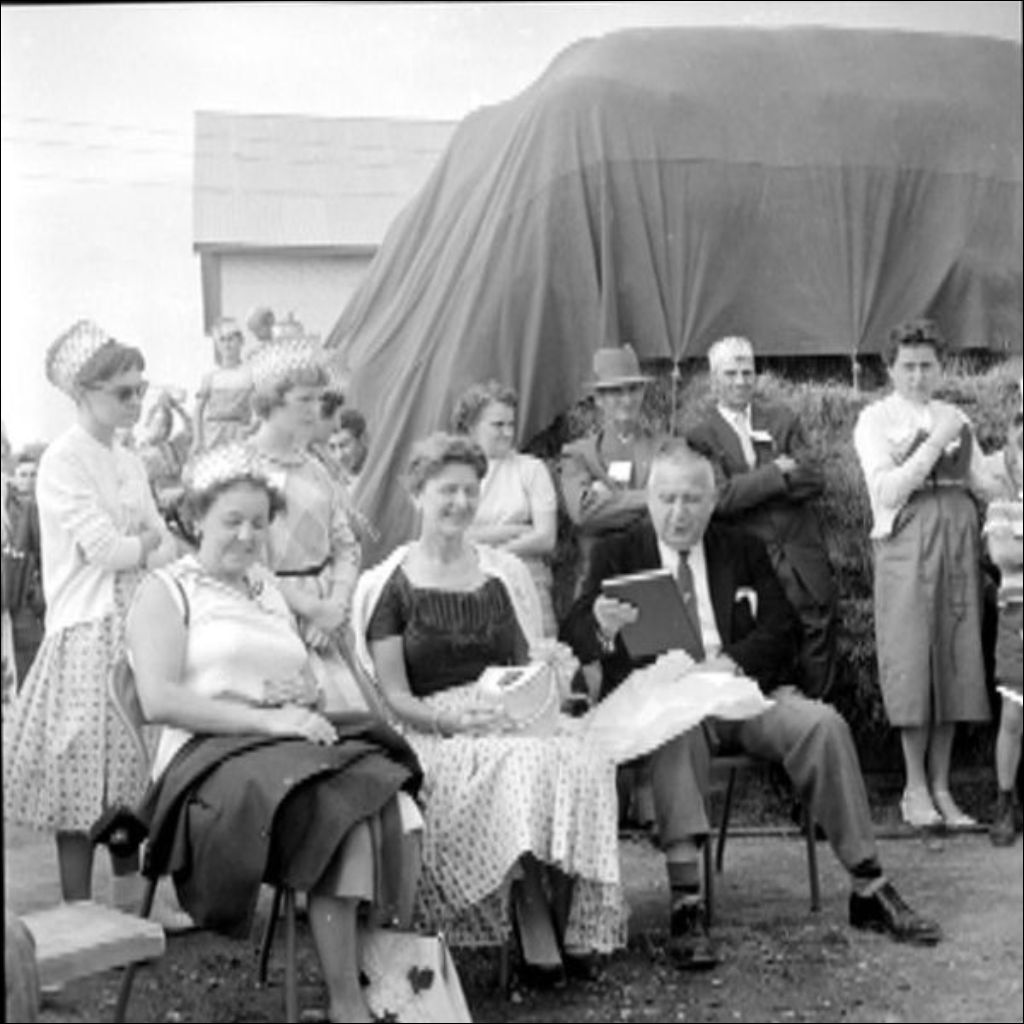 - Les visiteurs assistent à une conférence sur les mérites des produits Purina. Certaines installations, telles que la porcherie et la grange, sont photographiées. Dossier commandé par M. Raynault