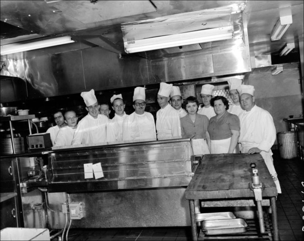 Ministère du Commerce et de l'Industrie. Nouvelle cuisine et nouveau personnel de l'hôtel de Lasalle, [195-?], Archives nationales à Montréal, Fonds Ministère de la Culture et des Communications, (06M,E6,S7,SS1,D219355-219355), Claude Décarie.