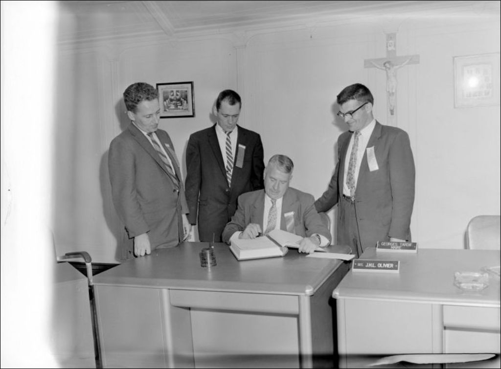 - Les membres signent le livre d'or (P219560) et assistent à une messe (P21961, P219563, P219570). Les pompiers défilent dans les rues d'Asbestos (P21966 à P219569, P219571 et des photographies de groupe (P219572 à P219575) complètent le dossier. Reportage réalisé pour M. E. Caron, propriétaire