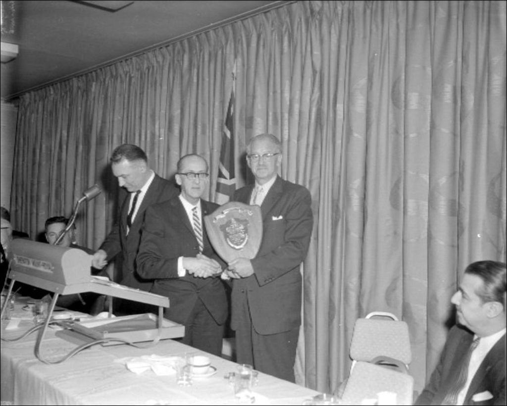 Ministère de la Chasse et des Pêcheries. Trophée remis à M. Tremblay à l'hôtel Mont-Royal, février 1959, Archives nationales à Montréal, Fonds Ministère de la Culture et des Communications, (06M,E6,S7,SS1,D221121-221121), Paul Girard.