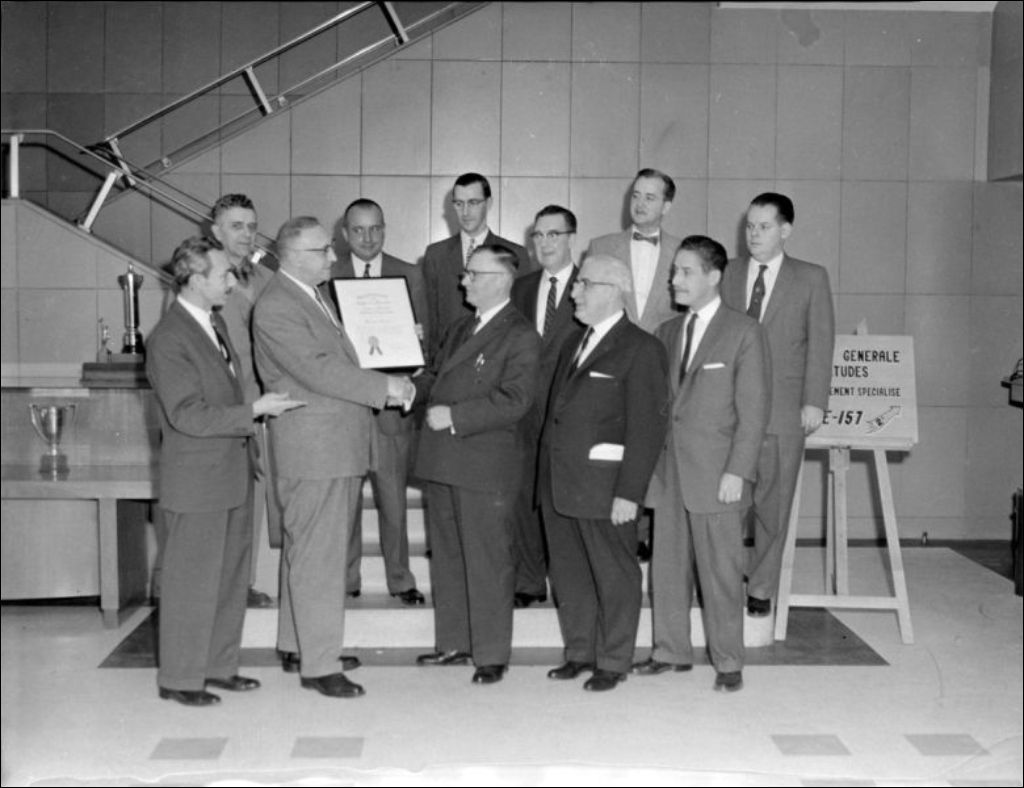 Remise d'un diplôme de l'Institut des arts graphiques de Montréal au sous-ministre du Bien-être social et de la Jeunesse, Gustave Poisson, [195-?], Archives nationales à Montréal, Fonds Ministère de la Culture et des Communications, (06M,E6,S7,SS1,D221836-221836), Jean Pratte.