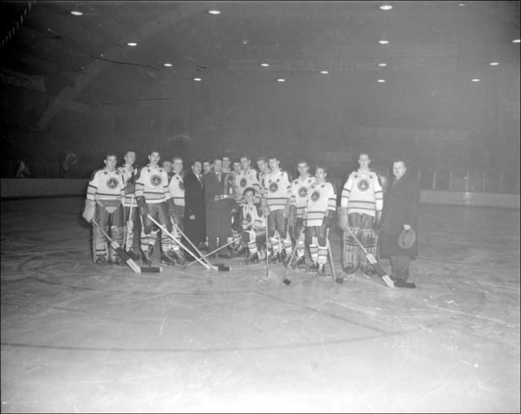 - Dans un aréna à Saint-Vincent-de-Paul, plusieurs activités sont organisées: course de brouettes sur glace (P221842), défilé de moyens de transport futuristes auquel prend part la Reine de la 92e promotion (P221843 à P221851) et remise de trophées aux capitaines des équipes de hockey de Tech Montréal et de l'Enseignement spécialisé (P221852, P221853). Une photographie de l'équipe de hockey de l'Enseignement spécialisé complète le dossier (P221841). Reportage réalisé pour M. R. Desrosiers