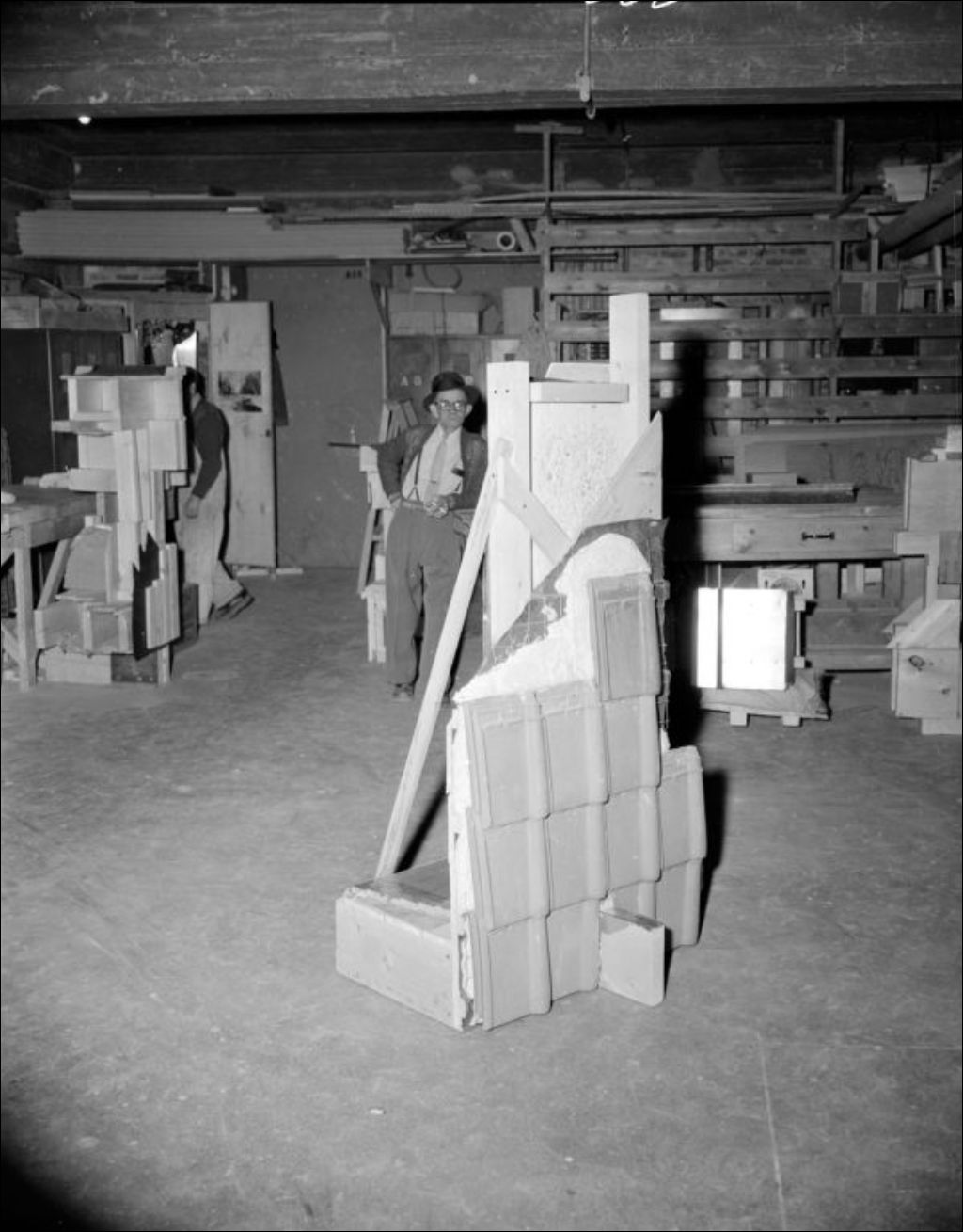 École des beaux-arts. Structures de bois et dormants de fenêtre réalisés au Centre d'apprentissage, [195-?], Archives nationales à Montréal, Fonds Ministère de la Culture et des Communications, (06M,E6,S7,SS1,D222061-222072), Adrien Hubert.