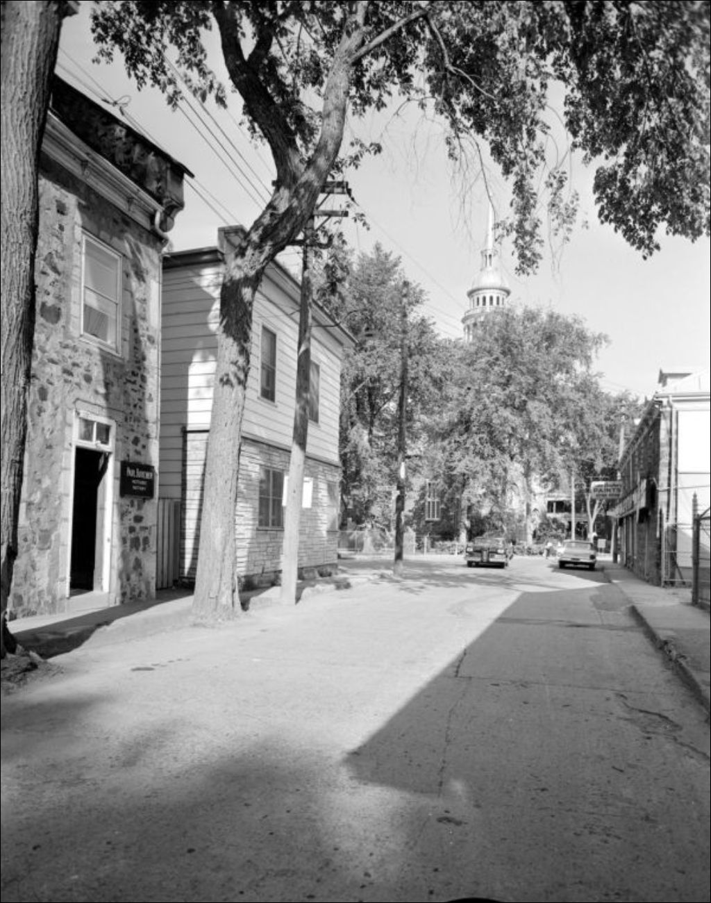 - Le bureau du notaire Paul Boucher (P222495) et la promenade aménagée au bord de l'eau (P222499) sont photographiés. Des clichés des rues de la ville (P22496 à P222498) ainsi que du clocher de l'église (P222495) complètent le dossier