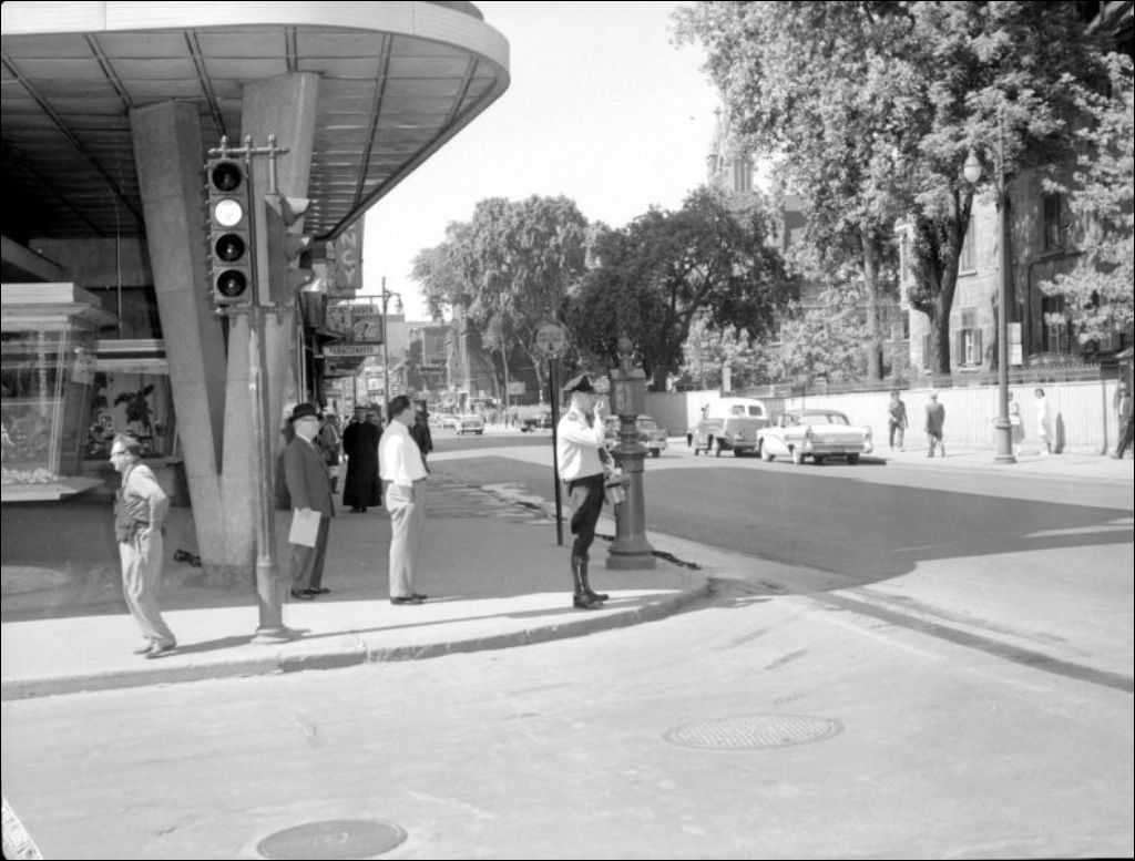 - Dans le cadre d'un programme sur la sécurité routière, un policier effectue des interventions auprès d'automobilistes et de piétons. Reportage produit pour M. J. L. Dyotte, directeur