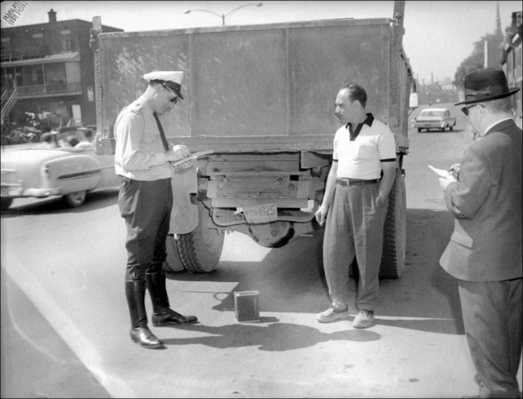 - Des policiers interviennent auprès d'automobilistes fautifs. Par ailleurs, un défilé composé d'une fanfare et de chars allégoriques comportant des messages sur la sécurité routière se déroule dans les rues de la ville. Dossier commandé pour M. J. L. Dyotte, directeur