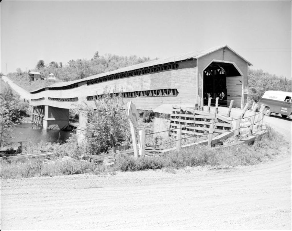 - Un pont couvert, un chantier de construction, des plans d'eau, une église, des champs et des routes sillonnant la région composent le dossier. Photographies commandées par M. E. Séguin