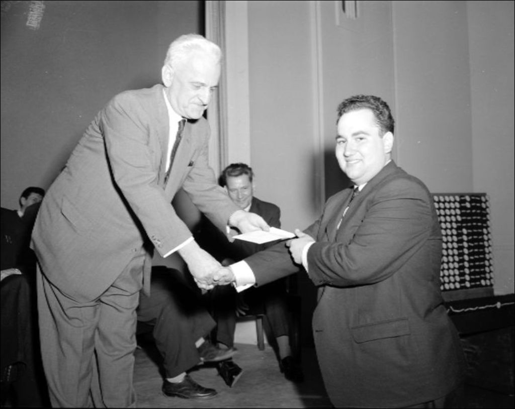 Ministère du Bien-être social et de la Jeunesse. Remise d'une bourse, [195-?], Archives nationales à Montréal, Fonds Ministère de la Culture et des Communications, (06M,E6,S7,SS1,D222827-222827), Adrien Hubert.