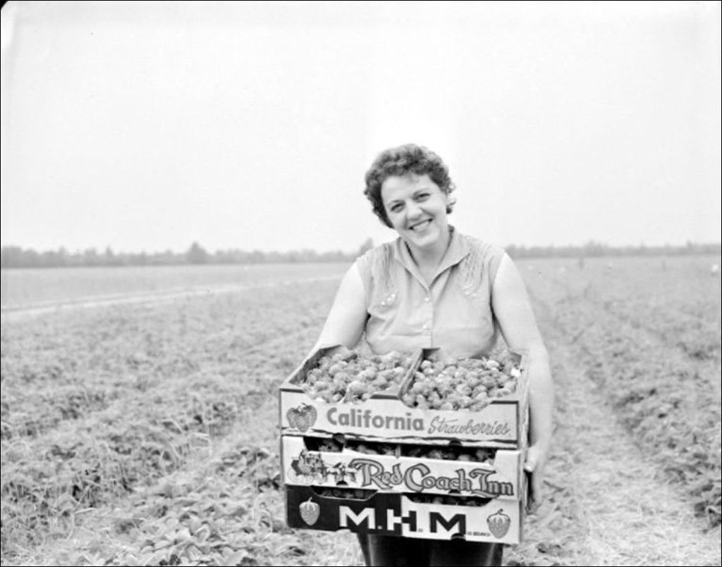 - Ministère de l'Agriculture. Cueilleurs dans un champ de fraises à Lanoraie, Lanaudière