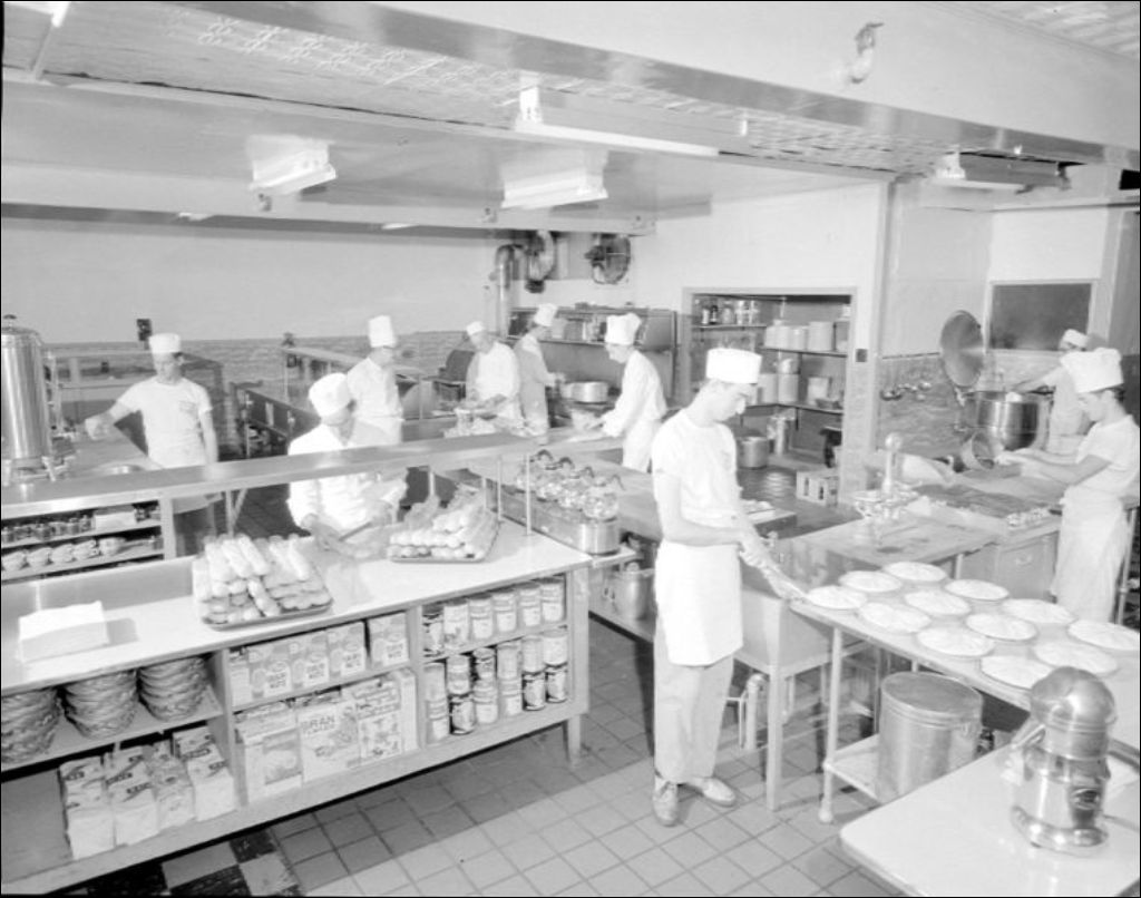 Nous remarquons la salle à manger (P223687 à P223692, P223703, P223706), le bar (P223695), la cuisine (P223685, P223708), la cave à vin (P223696 à P223697, P223700) et les bureaux administratifs (P223699, P223705) de l'hôtel. Photographies commandées par Marcel Puvilland