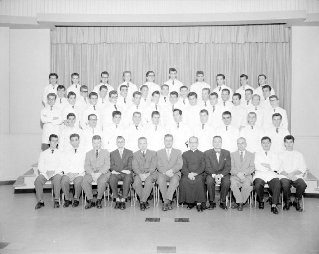Étudiants et professeurs de l'École des arts et métiers, [195-?], Archives nationales à Montréal, Fonds Ministère de la Culture et des Communications, (06M,E6,S7,SS1,D224073-224073), Paul Girard.
