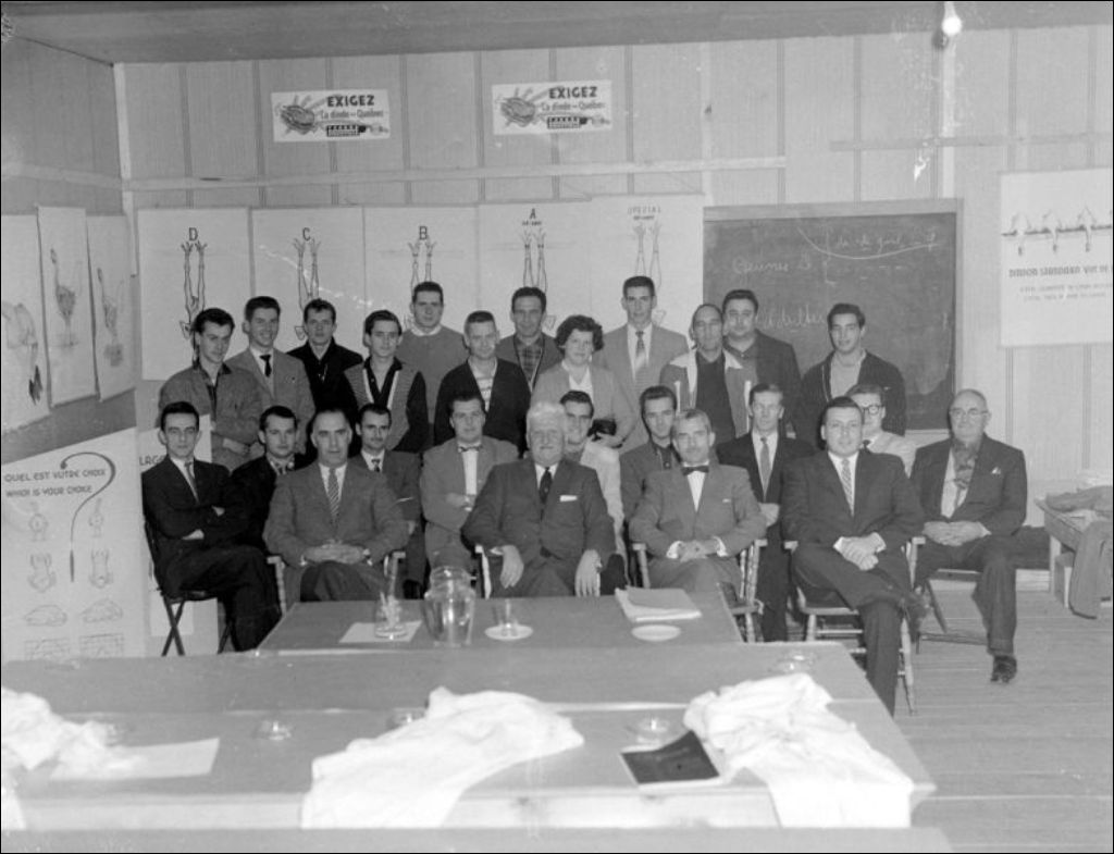 Cours de sélection de volailles à Saint-Félix-de-Valois, dans la région de Lanaudière, [195-?], Archives nationales à Montréal, Fonds Ministère de la Culture et des Communications, (06M,E6,S7,SS1,D224130-224131), Jean Pratte.