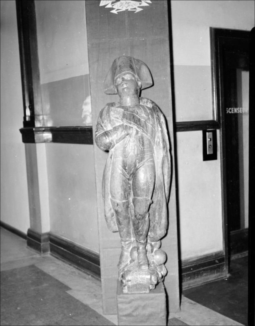 - Cette exposition, montée à l'occasion de la Semaine corse, comprend des figures de proue exécutées vers 1830: elles représentent Napoléon (P224636) et Joséphine (P224641). Nous remarquons aussi une vitrine renfermant des volumes, des gravures, des lithographies et des documents datant de l'époque de Napoléon (P224637), de même que des fauteuils directoires ayant appartenu à l'architecte Fontaine, décorateur et ornementaliste sous l'Empire de Napoléon (P224638). À ces images s'ajoutent celles prises lors de l'inauguration officielle de l'exposition: on y retrouve M. Garguan, consul de France à Montréal, M. Weimuller, conseiller culturel, Jacques-D. Casanova, organisateur de l'exposition et Jean-Marie Gauvreau, directeur de l'Institut des arts appliqués (P224639, P224642). De plus, nous apercevons des fauteuils, une bibliothèque en acajou ornée de bronze ciselé et un candélabre (P224640). Une photographie de la reproduction de la table des Maréchaux complète le dossier. Reportage réalisé pour M. Lalande
