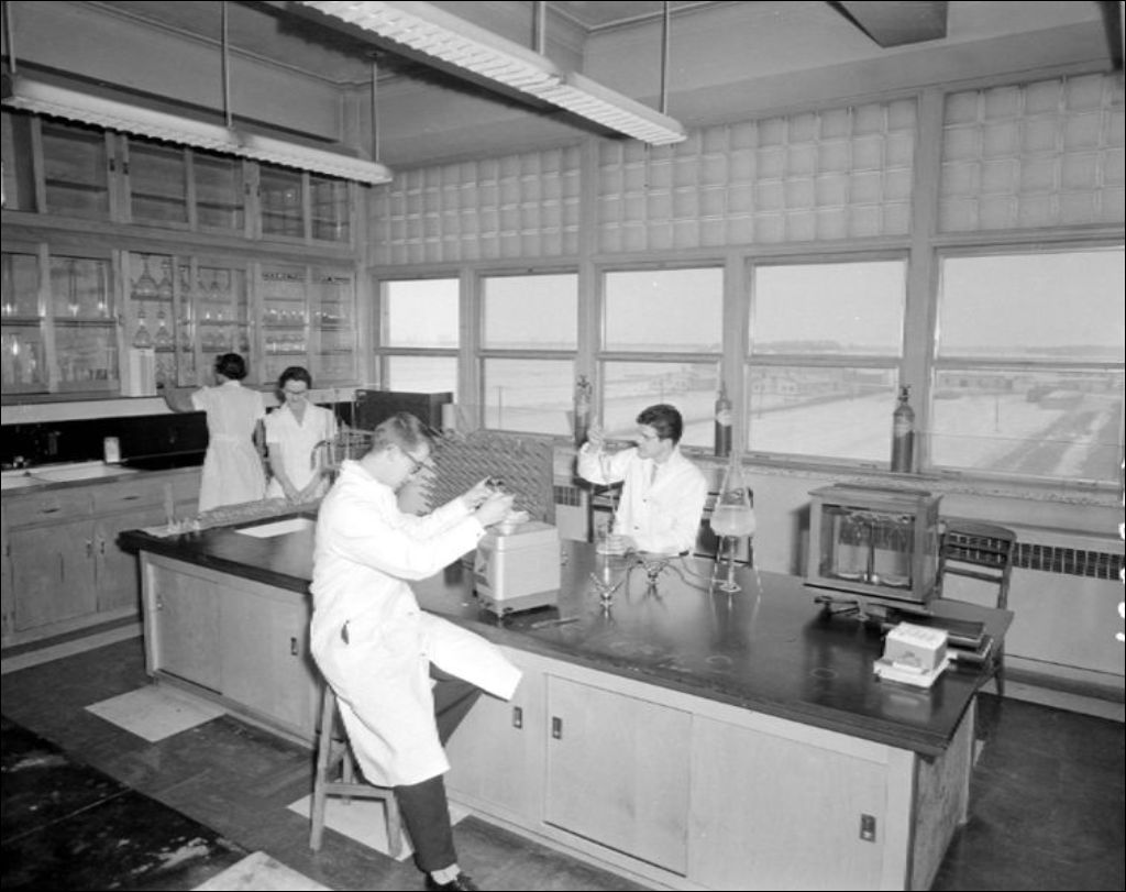 - Des étudiants font diverses analyses en laboratoire: cultures bactériennes, observations au microscope et dissections. Reportage commandé par Dr. Lafortune