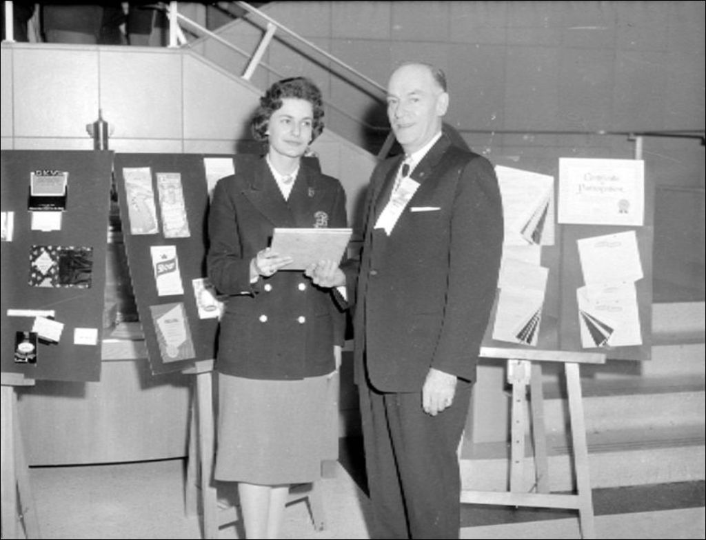 - Arrivés par autobus, les visiteurs assistent à une conférence à l'occasion de la Semaine de l'impression. Reportage commandé par M. Normandeau