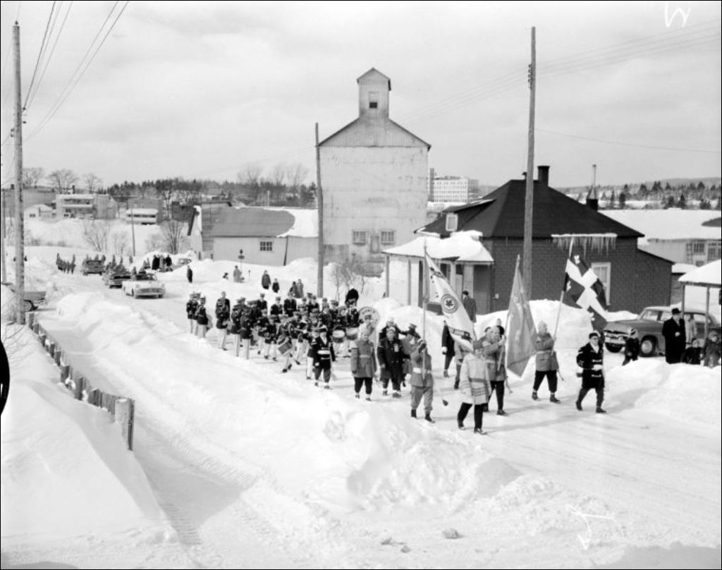 Office de publicité. Défilé à l'occasion de la convention des raquetteurs, Mont-Laurier, 1960, Archives nationales à Montréal, Fonds Ministère de la Culture et des Communications, (06M,E6,S7,SS1,D226146-226173), Joseph Guibord.