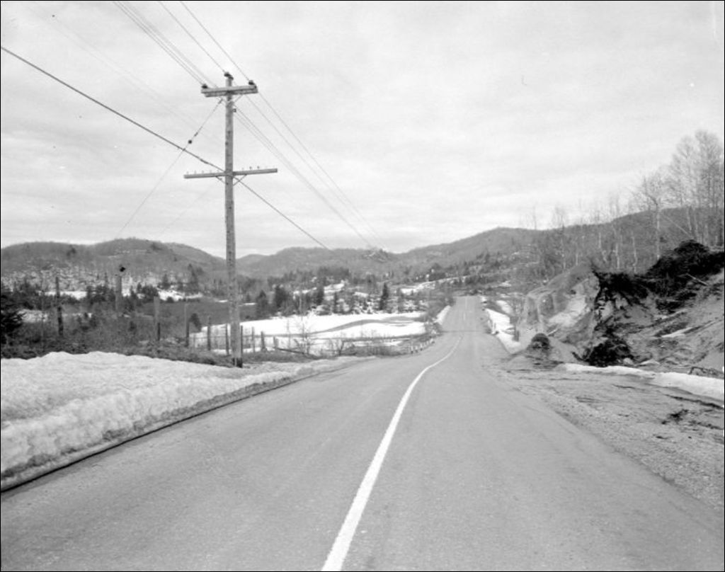 Ministère des Mines. Routes et paysages de Saint-Adolphe-d'Howard, Laurentides, 20 avril 1960, Archives nationales à Montréal, Fonds Ministère de la Culture et des Communications, (06M,E6,S7,SS1,D226461-226474), Joseph Guibord.